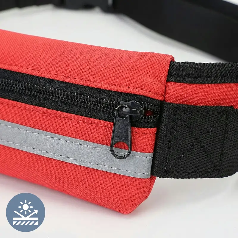 Geweldig voor een avondwandeling na het eten. Het reflecterende lint is goed zichtbaar in autolampen, en mijn spullen voelen veilig in het heuptasje.