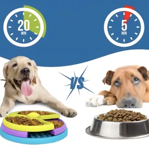 Mijn hond neemt eindelijk de tijd om te eten. Hij snuffelt zijn brokjes en verveelt zich niet meer tijdens het eten!