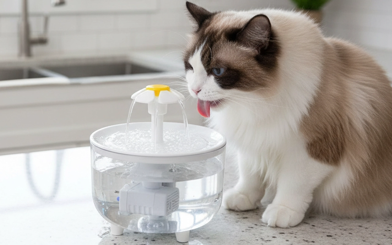 Stromend water trekt de aandacht en wekt nieuwsgierigheid bij huisdieren. Meer hydratatie ondersteunt actief spel en helpt gezondheidsproblemen voorkomen.