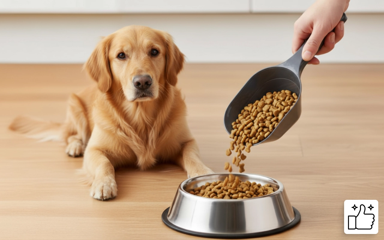 Ik gebruik deze elke ochtend voor onze husky en labrador. De diepe vorm past veel voer in, en mijn handen blijven schoon. Goede grip, geen geknoei.