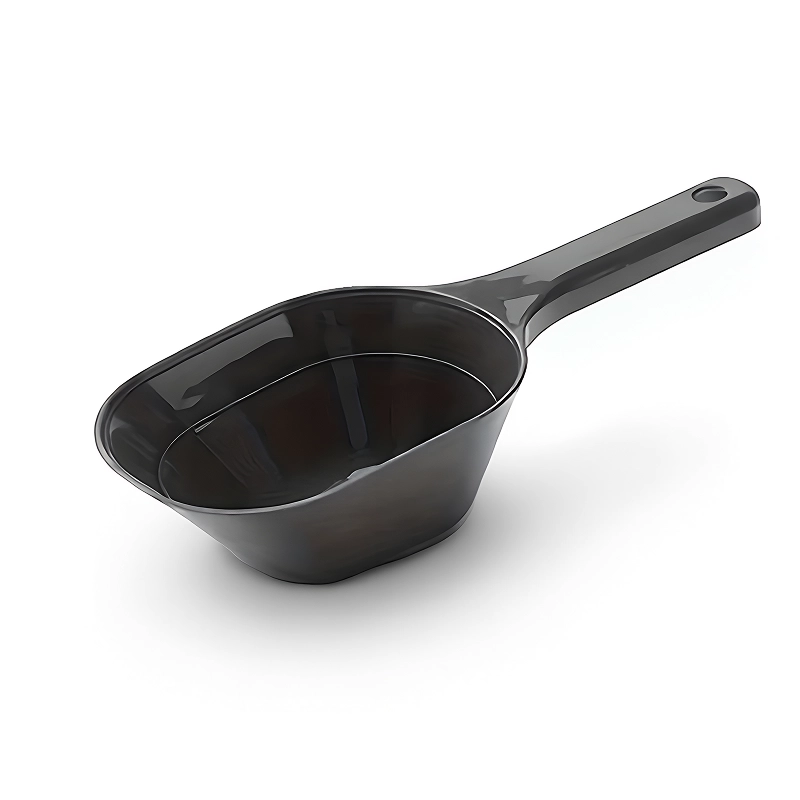Goede maat voor een grote hond! Ik hoef niet meerdere scheppen te gebruiken en het geheel is lichtgewicht maar voelt stevig aan. Ook snel schoon te schrobben.