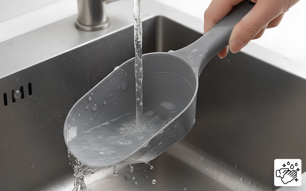 Glad materiaal is in enkele seconden schoon te maken met alleen water. Er blijft geen residu achter, zodat elke schep vers blijft.