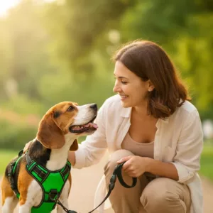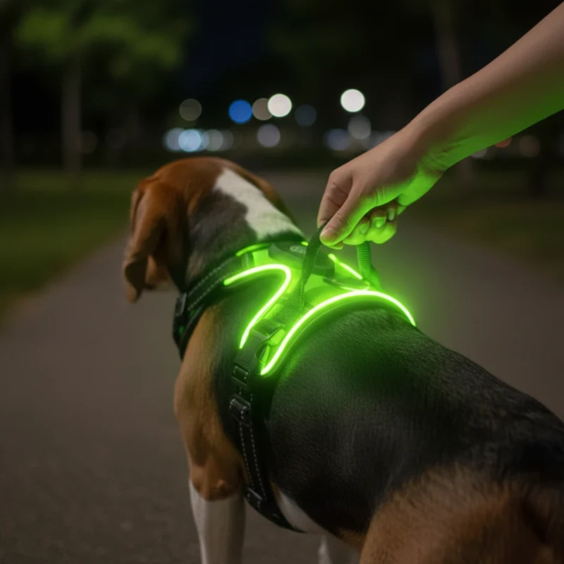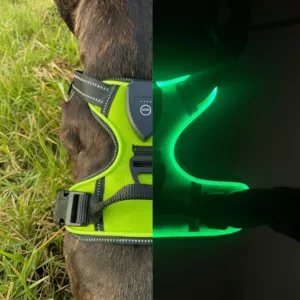 Onze wandelingen zijn zoveel makkelijker sinds we dit tuigje gebruiken. De lampjes zorgen ervoor dat auto’s ons meteen zien, en mijn hond blijft koel en comfortabel.