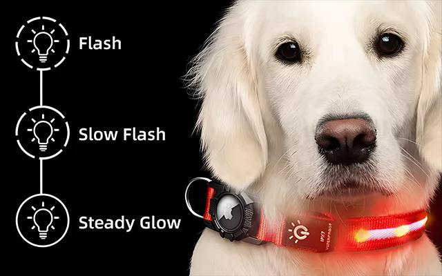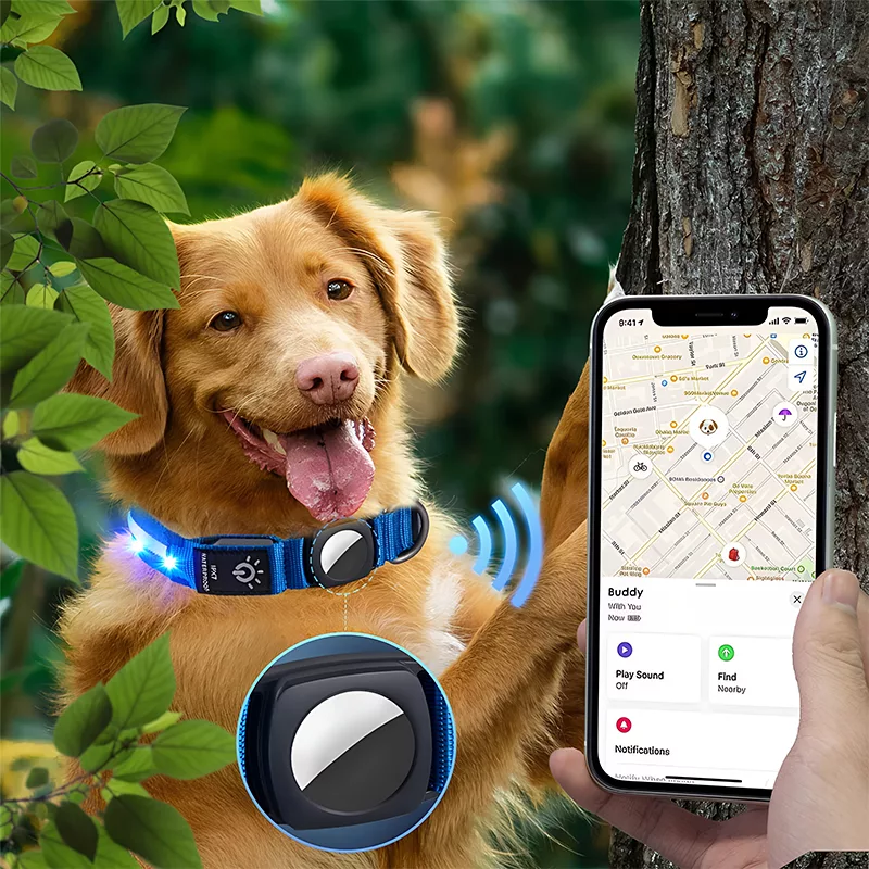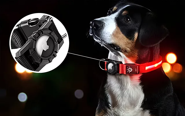 Vergroot de veiligheid van je hond met de innovatieve Primdog LED-halsband. Hij is uitgerust met een vakje waarin je AirTag comfortabel past. Zo vind je je huisdier zelfs in de donkerste hoeken van het park.