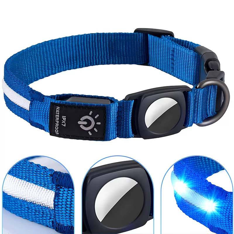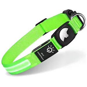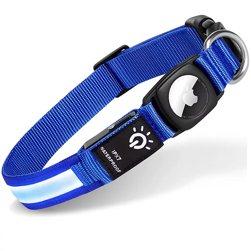 Deze lichtgevende halsband maakt wandelingen in het donker zoveel beter! Ik kan mijn hond altijd zien en het is een grote geruststelling dat haar AirTag veilig blijft.