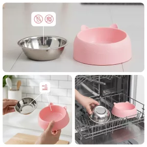 Uitneembare stalen inzet maakt snel, grondig schoonmaken mogelijk. Vers voedsel en water zijn altijd beschikbaar voor je huisdier.