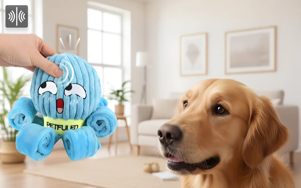 Sterke stof weerstaat speelse beten en lange speelsessies. Piepend en knisperend geluiden houden je huisdier urenlang enthousiast.