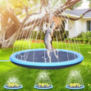 Ons splashpad is gemaakt van kwaliteitsmaterialen en belooft een lange levensduur. Het kan gemakkelijk ruw gebruik en veelvuldig gebruik aan. Het is een betrouwbare keuze voor huisdiereigenaren.