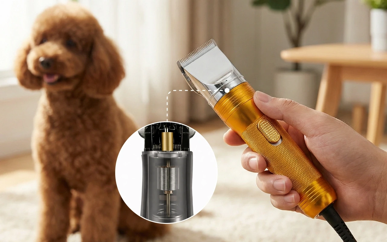 Sterke motor knipt snel zonder veel lawaai te maken. Huisdieren blijven kalm en ontspannen tijdens het trimmen.