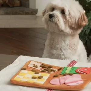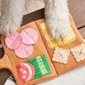 Mijn poedel vindt het geweldig om rond te graven in de pluchen strips, op zoek naar verstopte snoepjes. De felle kleuren trekken zijn aandacht en maaltijden zijn nu veel leuker.