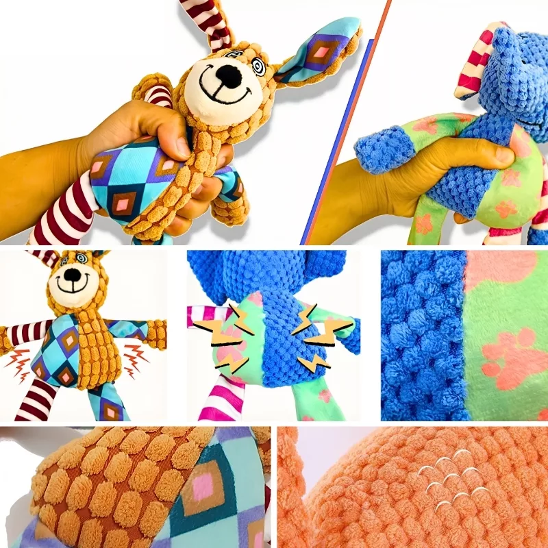 Wanneer erin gebeten of geknepen wordt, maakt het Primdog knuffelspeeltje een piepend geluid. Dit geluid stimuleert de nieuwsgierigheid en speelsheid van honden. Ze zullen uren bezig zijn om te achterhalen waar het vandaan komt.