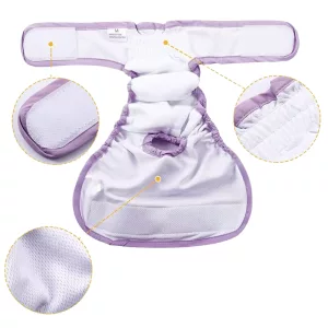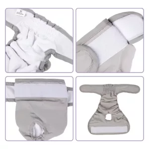 Dankzij de sterke klittenbandsluiting hoef je je geen zorgen te maken dat de luier per ongeluk afvalt. Hij blijft goed zitten, zelfs als je huisdier actief is.