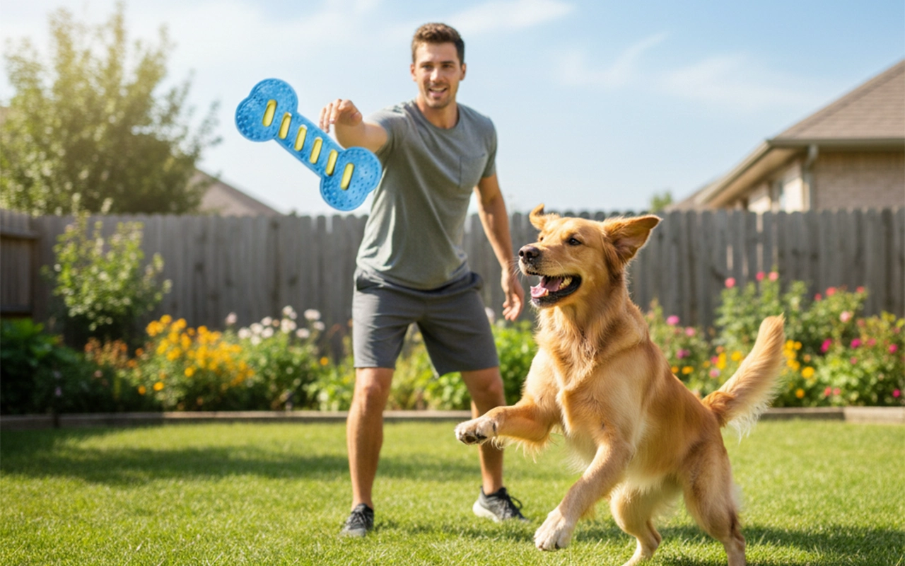 Samen quality time beleven gaat beter met een interactief apporteerspeeltje. Het speeltje houdt honden bezig, vermindert destructief gedrag en bevordert lichaamsbeweging.