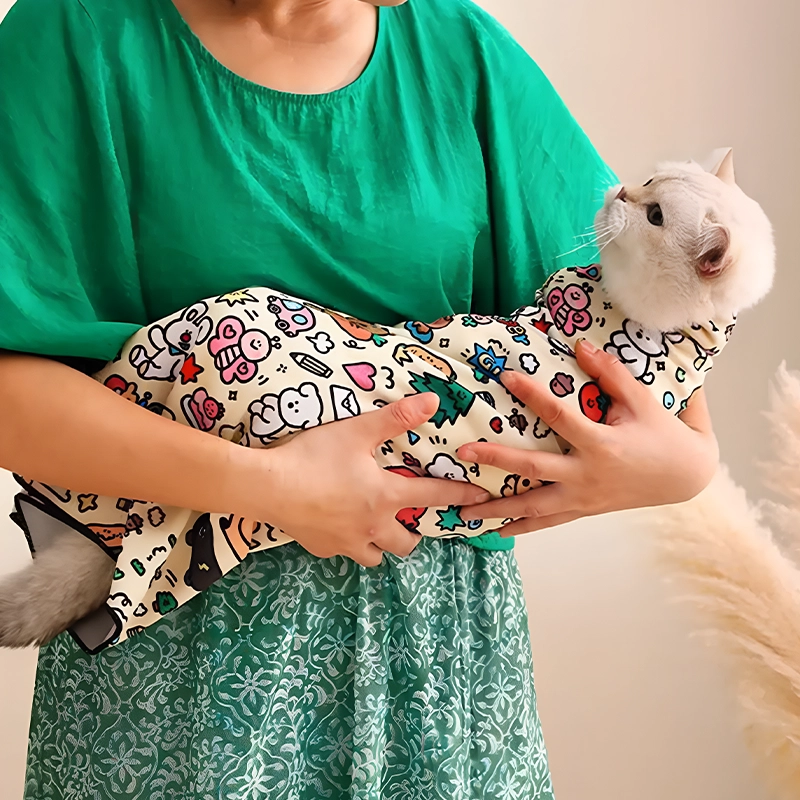 De wikkel geprobeerd bij onze kitten en ze maakte geen enkel probleem! Het materiaal is ademend en ik had geen nieuwe krassen. De felle prints zijn ook schattig.