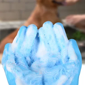 Deze verzorgingshandschoenen maken badtijd makkelijk voor mijn hond. Hij blijft rustig en vindt het zelfs leuk! Zo blij dat ik deze voor de wekelijkse wasbeurten gevonden heb.