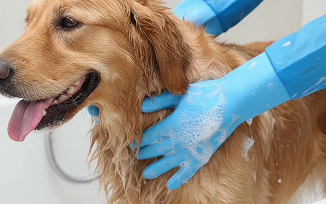 grooming gloves, dog bathing gloves, dog scrubbing gloves