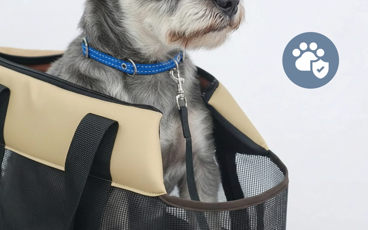 Mijn hond is dol op deze draagtas, vooral het gaas waardoor er lucht in komt. Hem dragen was nog nooit zo makkelijk en ik voel me gerust doordat hij vastzit aan de lijnclip.