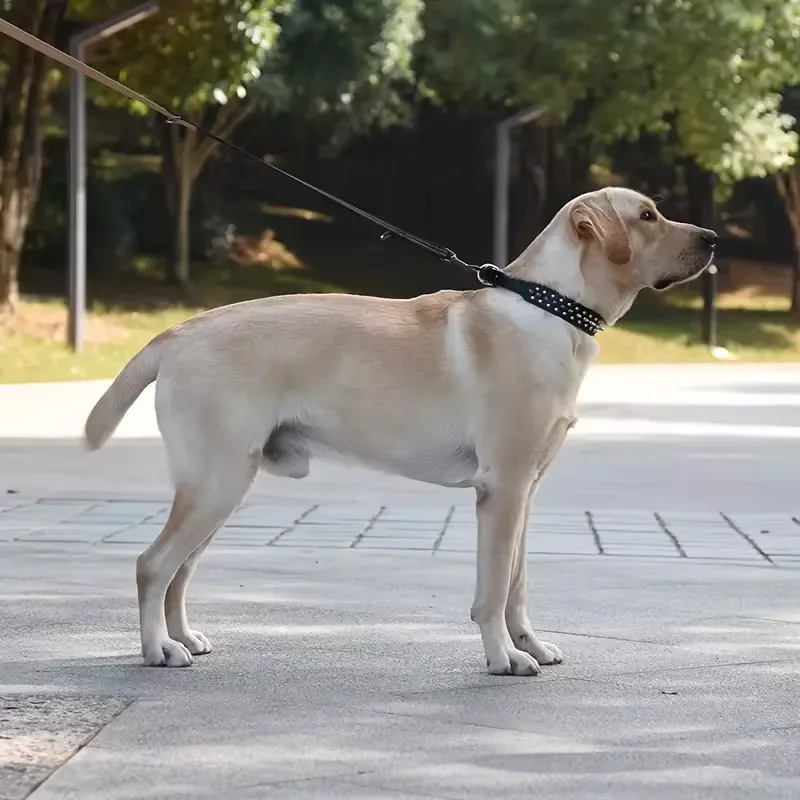 Mijn bulldog krijgt zoveel complimenten als we naar het park gaan. De spikes geven hem echt die stoere look. De lijn voelt ook sterk aan.