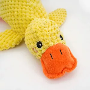 Piepende eend houdt mijn energieke pup bezig. Heeft veel speelsessies doorstaan zonder schade. Erg zacht om aan te raken.