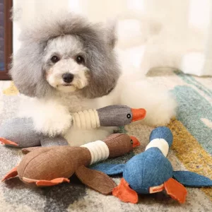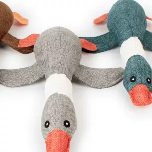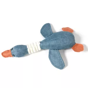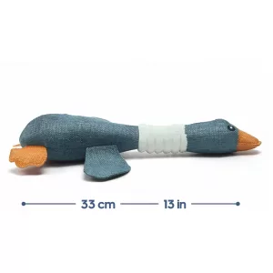 Dit schattige gansenspeeltje is perfect om mee te apporteren en op te kauwen. Onze pup verliest er nooit zijn interesse in en ons meubilair blijft veilig!