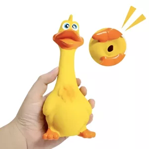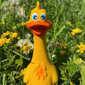 Mijn hond kan niet genoeg krijgen van deze schattige piepende eend. Het moedigt spel aan en houdt haar betrokken en actief. Een totale overwinning voor ons!