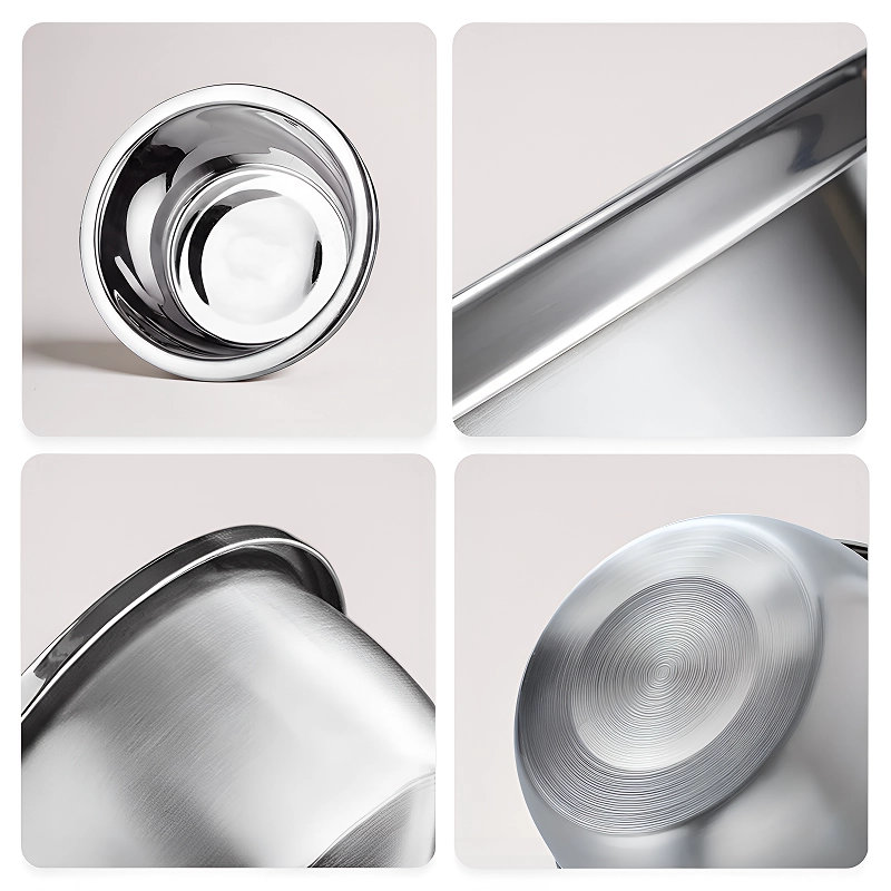 Deze roestvrijstalen kommen zijn zo sterk! Geen enkele deuk of kras na maanden gebruik. Ik hoef voorlopig geen nieuwe kommen te kopen.