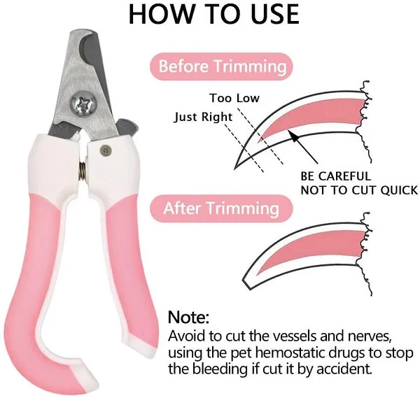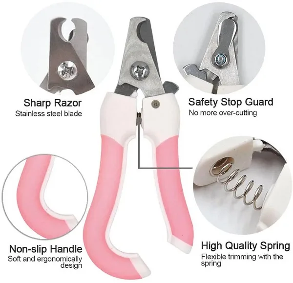 Deze tang is voorzien van scherpe, schuine roestvrijstalen messen om nagels snel, schoon en veilig te knippen. Gemaakt van ultraduurzaam roestvrij staal, zullen de messen van deze tang niet buigen, krassen of roesten en blijven ze scherp na meerdere knipbeurten, zelfs als uw hond stevige nagels heeft. De handvatten zijn gevormd om perfect in uw vingers te passen en zijn voorzien van antisliprubber voor extra veiligheid. De comfortabele rubberen grip vermindert handvermoeidheid en voorkomt uitglijden. De veiligheidsbeugel voorkomt te diep knippen en het raken van de snelle, en kan in de gesloten stand worden vergrendeld voor opslag. Verkrijgbaar in 2 kleurvarianten: blauw en roze, passend bij uw pup. Aanbevolen door professionals als onderdeel van uw thuistrimroutine.