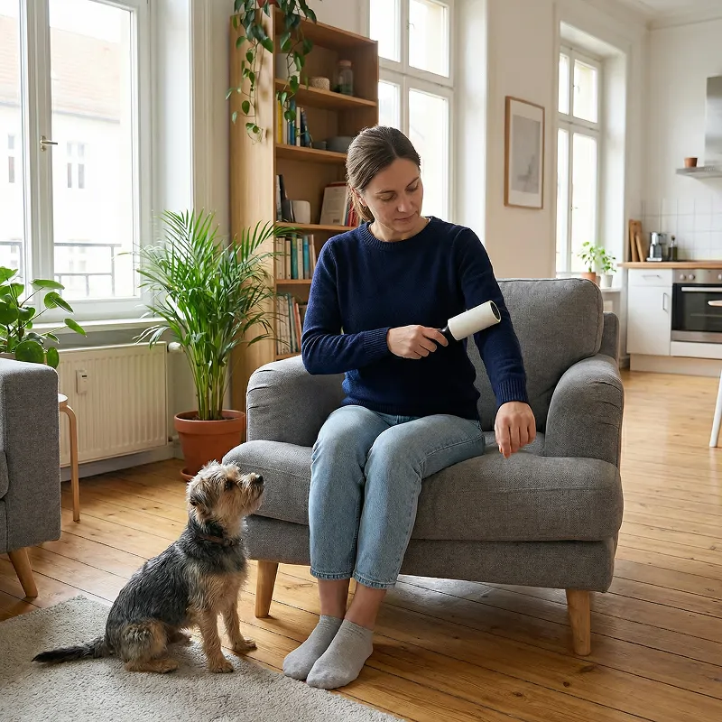 Met deze kleefroller haalde ik in enkele minuten zoveel dierenharen van mijn trui en bank. Mijn vrienden zagen meteen hoe schoon mijn kleding weer was.