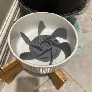De zuignappen bevestigen deze inzet stevig aan de hondenkom. Mijn kommen zijn van roestvrij staal, maar het werkt op elk oppervlak. Een geweldige optie als je honden hebt die hun voedsel snel opeten.