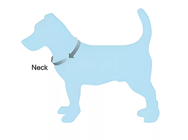 - 1. Om de nekomtrek van een hond te meten, wikkel je een meetlint om de basis van de nek van de hond, net onder de oren.