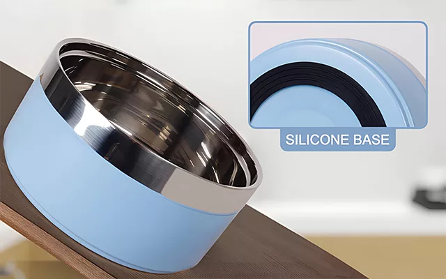 De Primdog kom heeft een siliconen basis die voorkomt dat hij over de vloer schuift. Hij blijft op zijn plek, zelfs als er tegenaan wordt gestoten.
