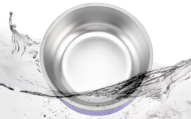Onze kom is gemaakt van roestvrij staal dat zelfs de meest vastberaden kauwers doorstaat. Het roest niet en verliest zijn glans niet, zelfs niet na jaren gebruik.