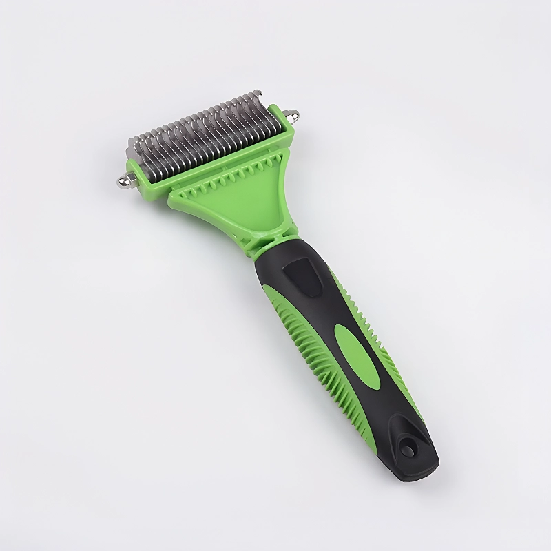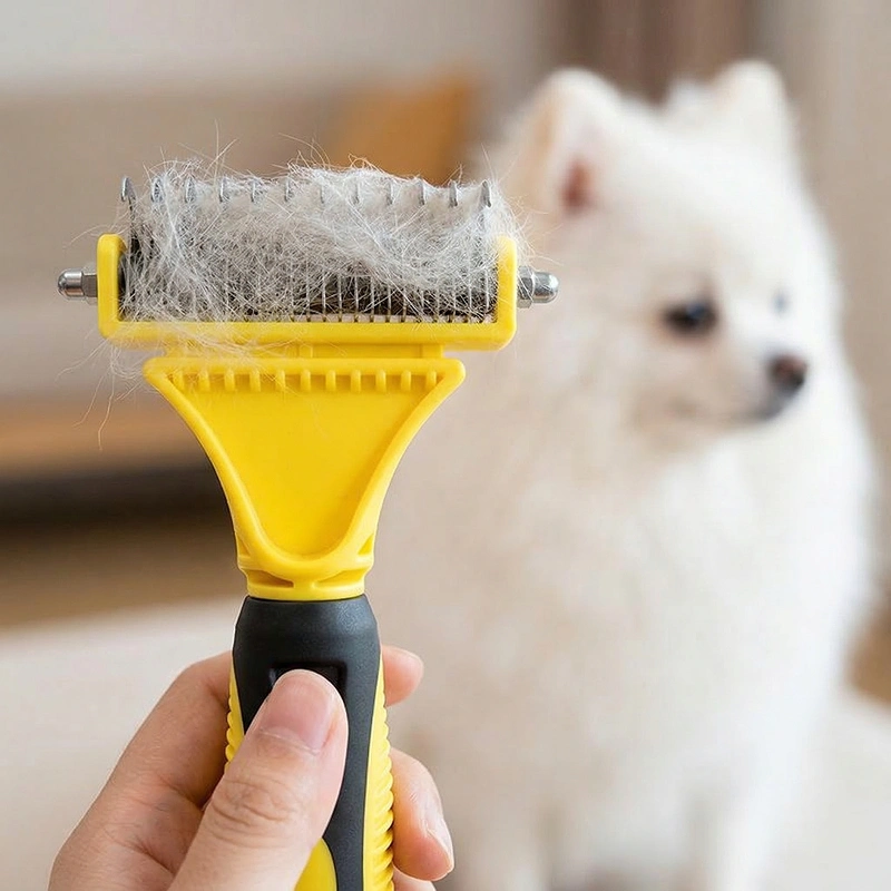 Deze kam voor mijn hond gekocht. Hij glijdt door zijn dikke vacht, haalt oude klitten los en laat hem zacht achter zonder gejammer of gedoe.
