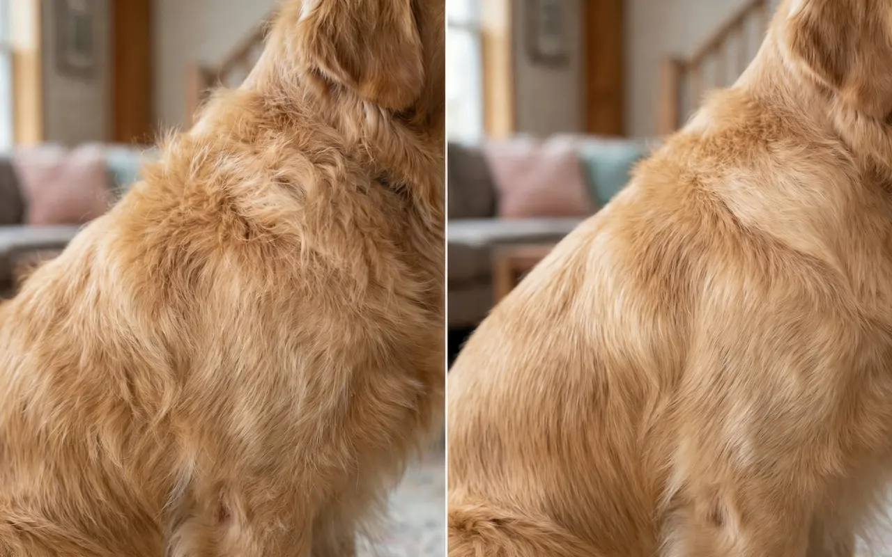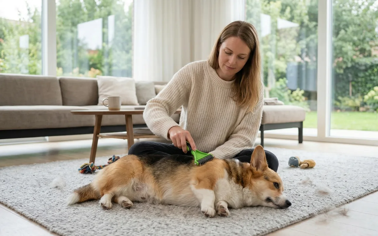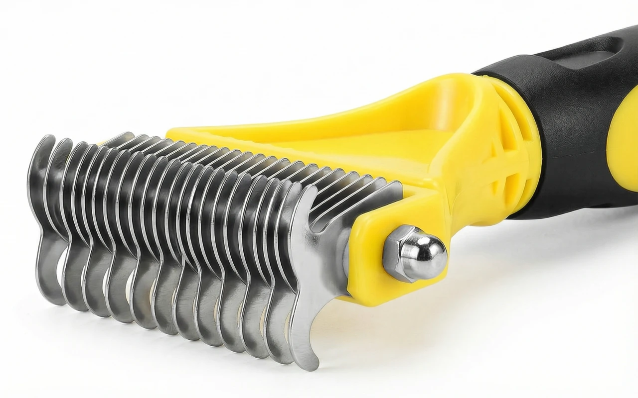 Ik trim mijn hond nu thuis. De roestvrijstalen hark haalt de ondervacht eruit, laat haar glanzend achter en het handvat voelt stevig, zelfs als mijn handen vochtig zijn.