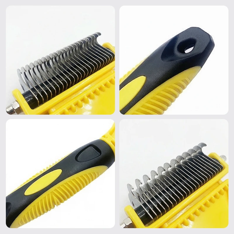 Tweezijdige roestvrijstalen hondenvacht-ontklittingshark, ontwarrende kam en ontviltingsgereedschap
