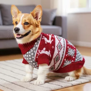 Mijn kleine mopshond wordt helemaal enthousiast als ik deze trui bij hem aantrek! Hij is super comfortabel en het kerstpatroon staat zo schattig op foto’s. Pasvorm is perfect!