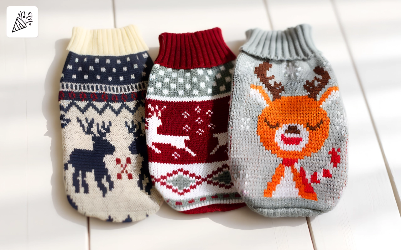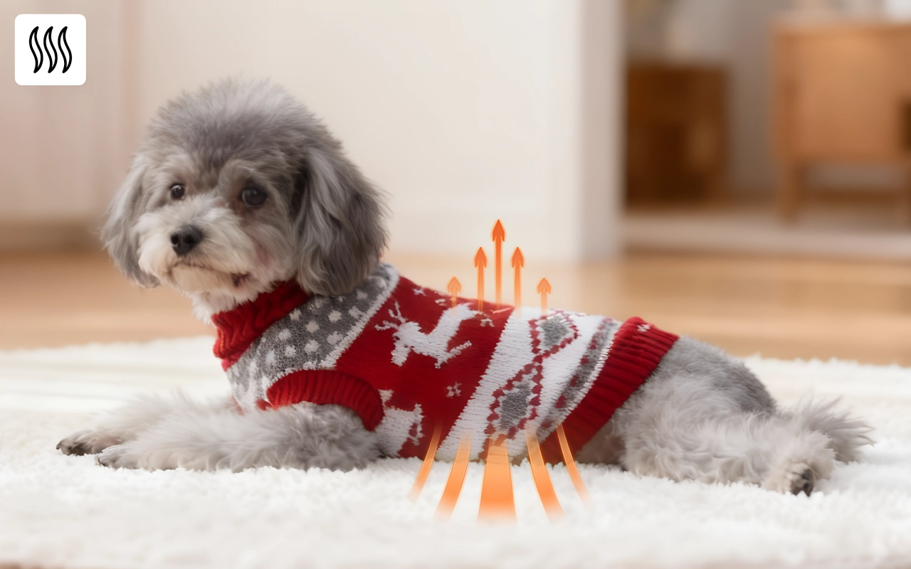 Dik breiwerk voorkomt dat koude tocht het gevoelige vachtje bereikt. Huisdieren genieten van warmte en comfort, of ze nu spelen of rusten.