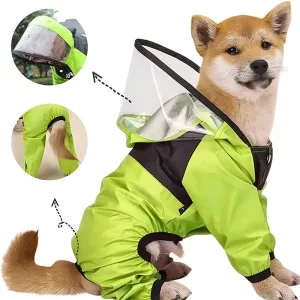 Mijn hond vindt het echt leuk om deze regenjas te dragen! Houdt hem droog tijdens onze natte ochtendwandelingen, en hij ziet er super schattig uit. De capuchon is doorzichtig zodat hij nog steeds kan zien.