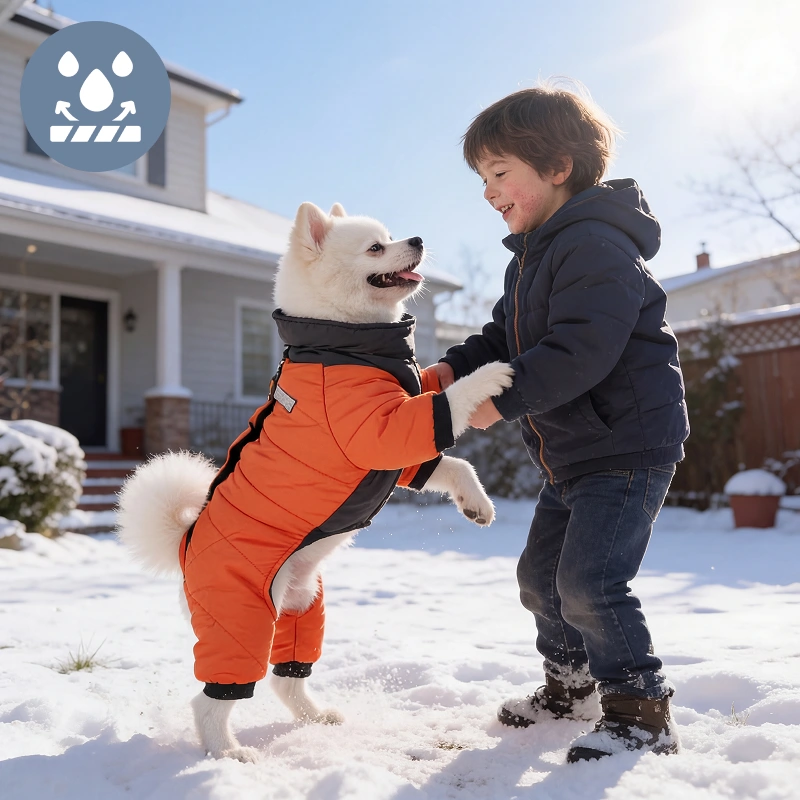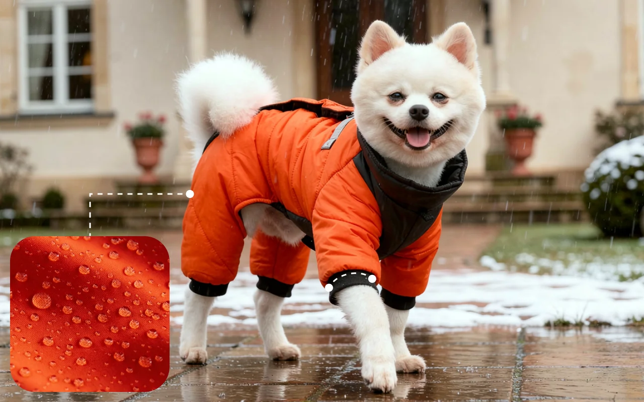 Waterdichte stof houdt de vacht droog, zelfs tijdens regen. Winddichte boorden sluiten de kou buiten, zodat het avontuur nooit eindigt.