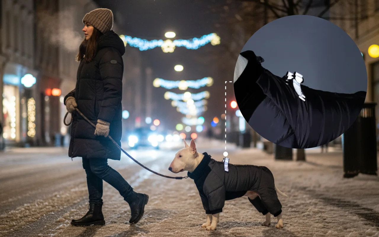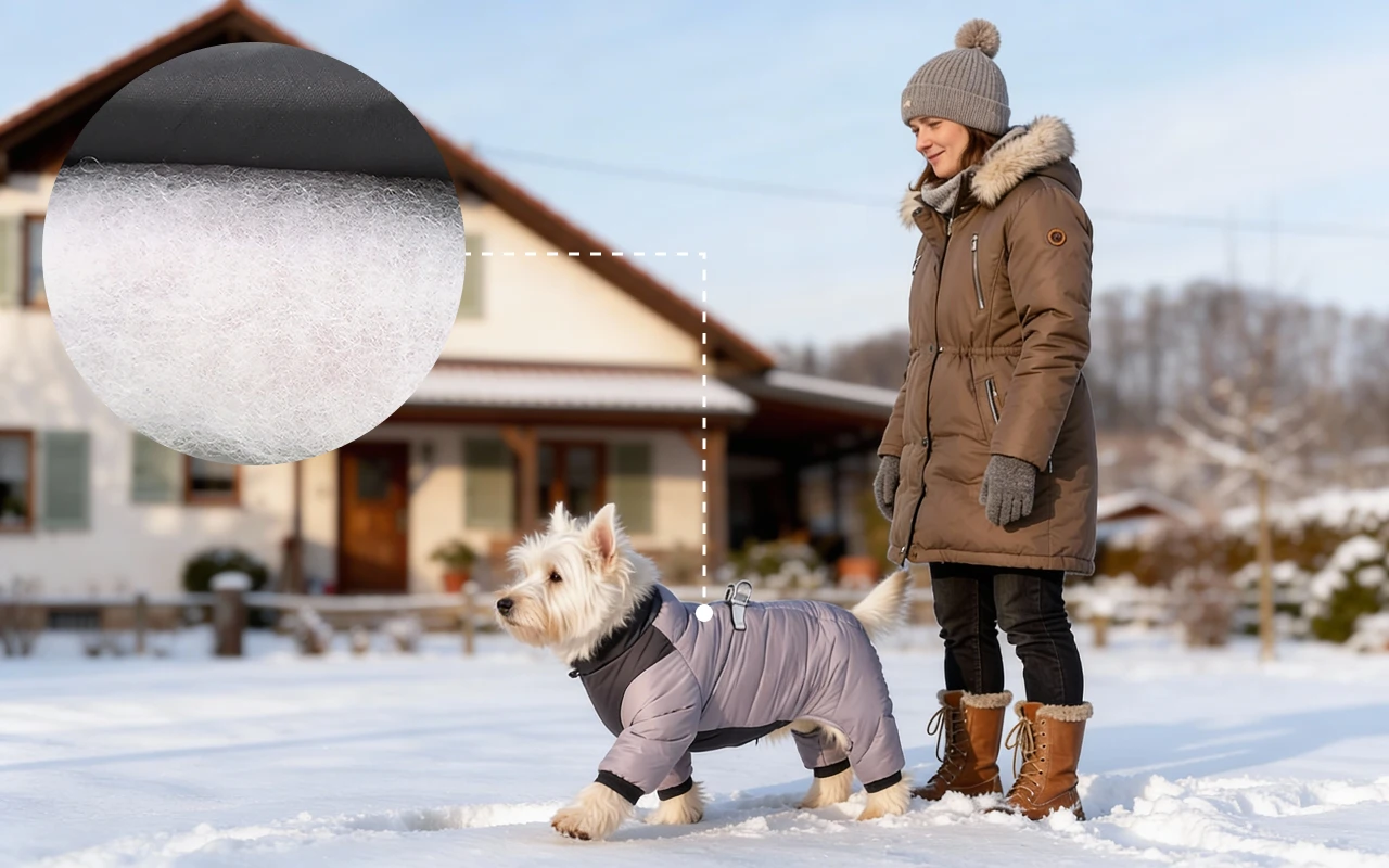 Dikke voering voorkomt kou tijdens ijzige wandelingen. Honden blijven blij en beschermd zonder buiten te rillen.
