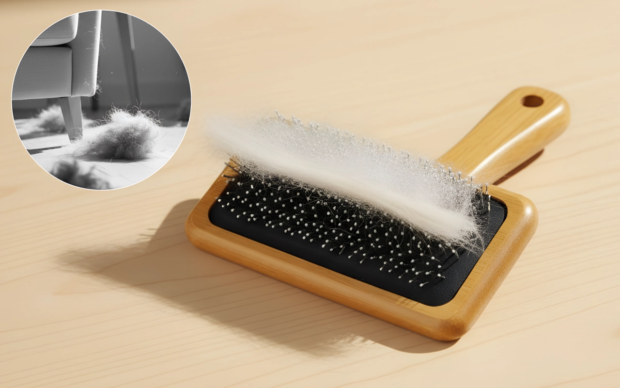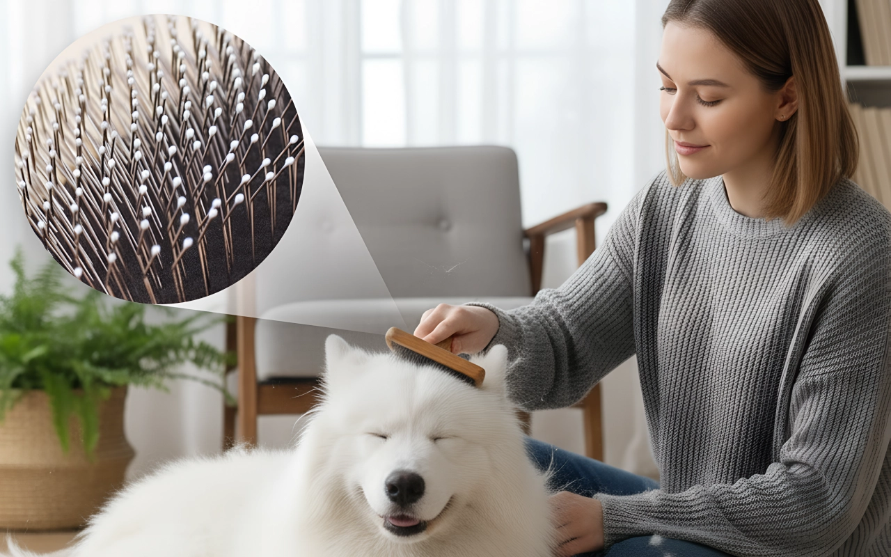 Afgeronde punten beschermen de gevoelige huid terwijl losse haren worden verwijderd. Huisdieren genieten van zachte bewegingen zonder krassen of ongemak.