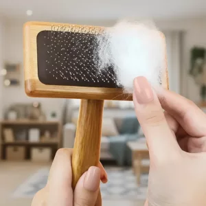 Mijn hond heeft normaal een hekel aan borstels, maar deze houten kam laat haar kwispelen. De borstelharen doen haar helemaal geen pijn. Ze ziet er na elke borstelbeurt geweldig uit.