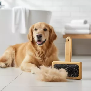 Deze duurzame kam op mijn golden retriever gebruikt en haar vacht glanst. Ze lijkt zelfs enthousiast als ik hem elke ochtend pak.