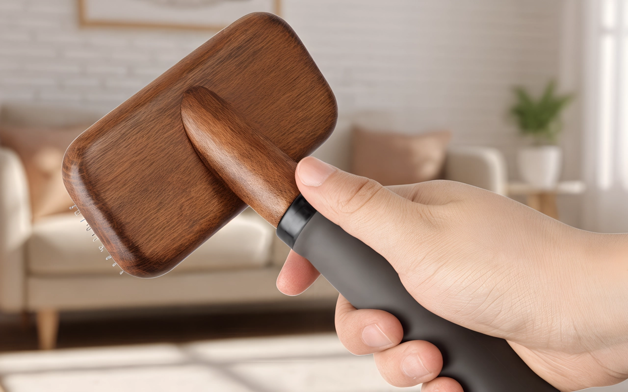 Ik vind het fijn dat hij van echt hout is gemaakt en niet van plastic. De haren zijn zacht, dus mijn spaniël is niet meer bang om geborsteld te worden. Grote fan.